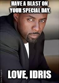 Have a blast on your special day. Love, Idris.