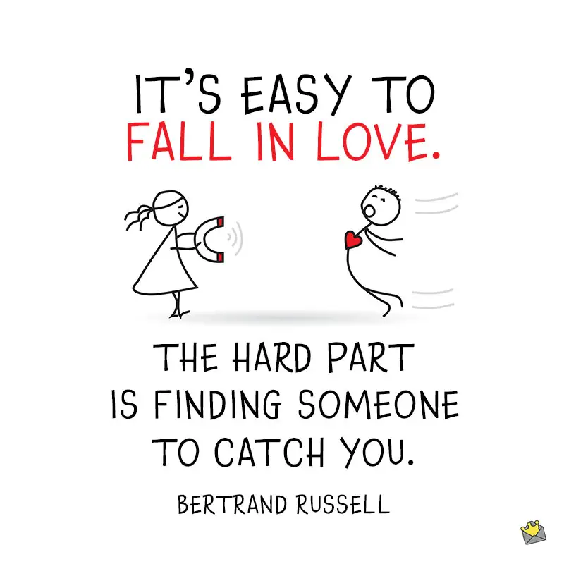 - It’s easy to fall in love. The hard part is finding someone to catch you. Bertrand Russell